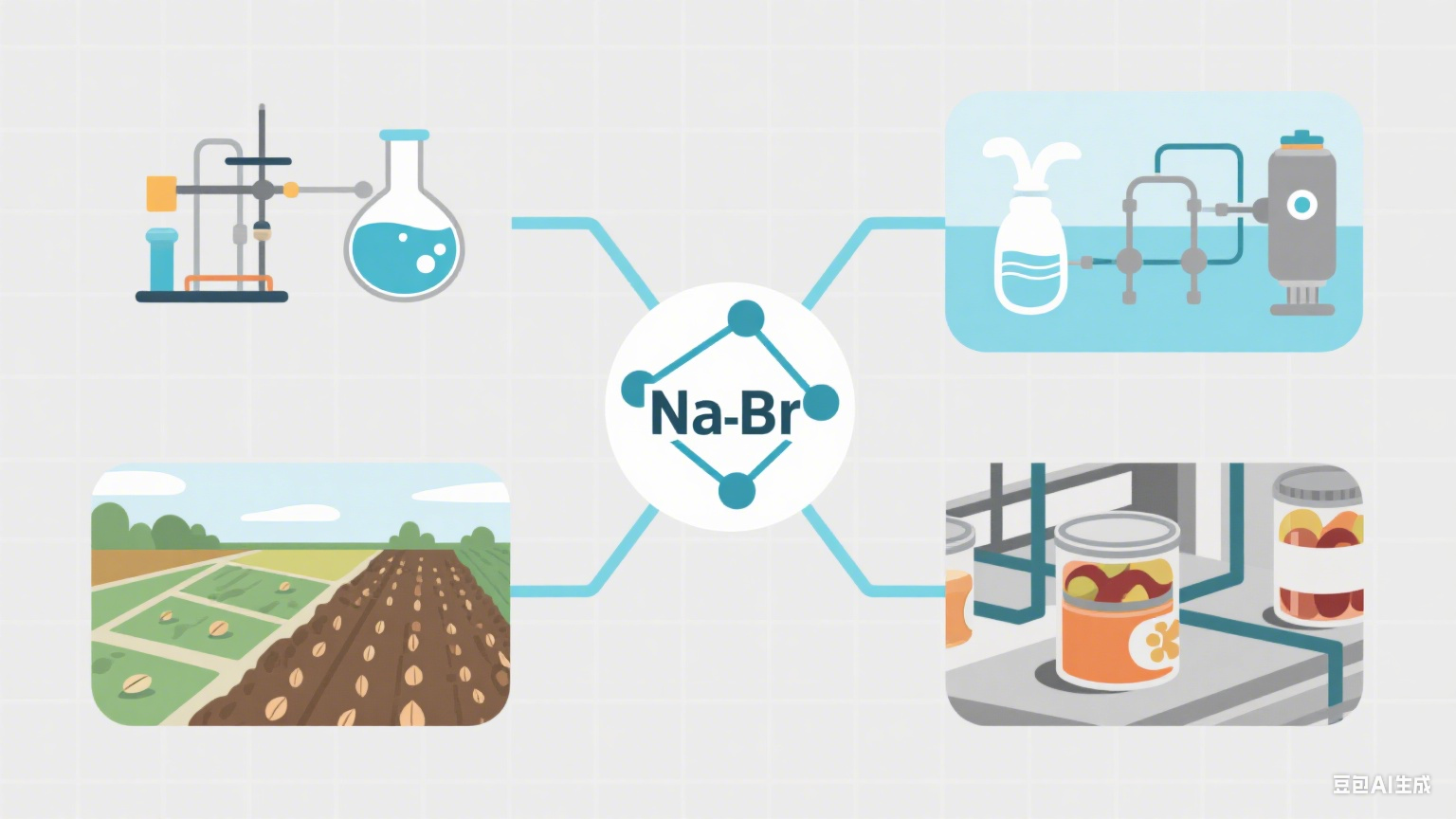 溴化鈉(NaBr)是一種由鈉和溴組成的化合物,呈白色結(jié)晶或顆粒狀固體,易溶于水。作為一種重要的無機(jī)化學(xué)物質(zhì),溴化鈉不僅在化學(xué)工業(yè)中占有重要地位,還廣泛應(yīng)用于其他多個領(lǐng)域。其在工業(yè)中的應(yīng)用涵蓋了化學(xué)合成、水處理、農(nóng)業(yè)、食品加工等多個方面,具有廣泛的商業(yè)價值和應(yīng)用潛力。